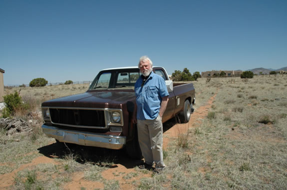 Jack Loeffler by his truck which transported Ed Abbey to his final resting spot - by ML Lincoln