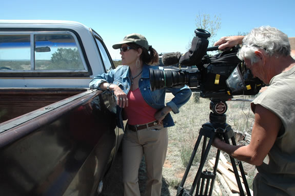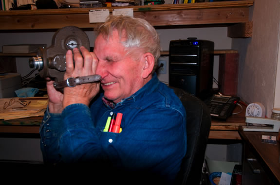 Ken Sleight with old movie camera - by Ed George